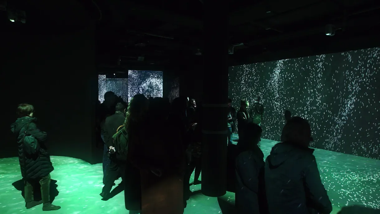 Nous avons documenté l’exposition En Amour, présentée à la Philharmonie de Paris, une expérience sensorielle mêlant images projetées et sons spatialisés. Pensée comme une immersion émotionnelle, cette installation explore la relation entre image, son et perception, dans un espace conçu pour envelopper le visiteur.